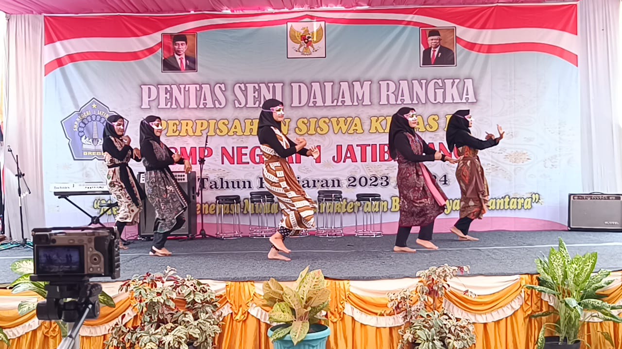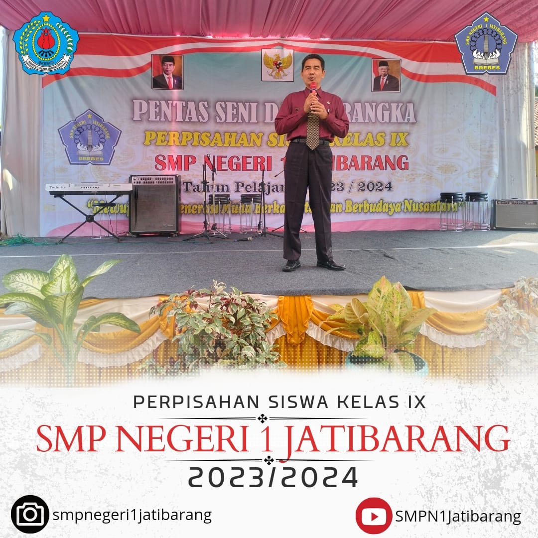 Tema dari Pentas Seni dalam Rangka Perpisahan Siswa Kelas IX SMP Negeri 1 Jatibarang Tahun pelajaran 2023/2024 yaitu Menunju Generasi Muda Berkarakter dan Berbudaya Nusantara. Acara Pentas Seni dalam Rangka Perpisahan Siswa Kelas IX SMP Negeri 1 Jatibarang Tahun pelajaran 2023/2024 dihadiri para pejabat di lingkungan Kecamatan Jatibarang, mulai dari perwakilan kecamatan jatibarang sampai Bapak/Ibu Kepala sekolah SD di Kecamatan Jatibarang, serta Muspika yang ada di Jatibarang.