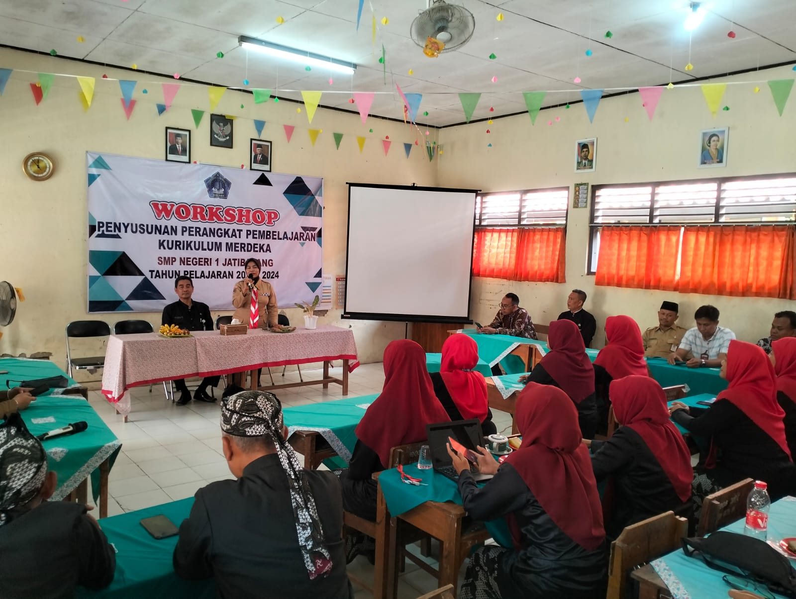 Senin(18/12) Bapak/Ibu guru SMP Negeri 1 Jatibarang melaksankan workshop penyusunan perangkat pembelajaran kurikulum merdeka yang dihadiri oleh Ibu Kepala Dinas Pendidikan, Pemuda dan Olahraga Kabupaten Brebes, Ibu Caridah, M.Pd.